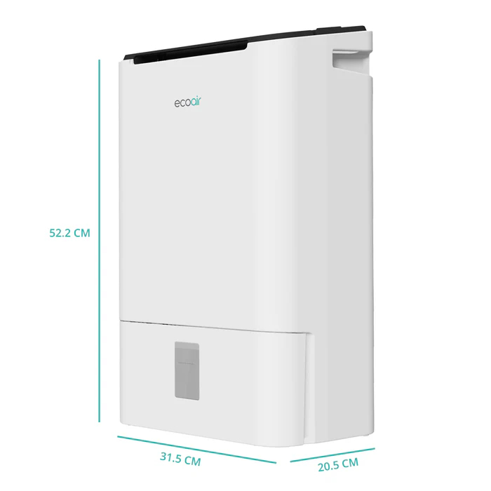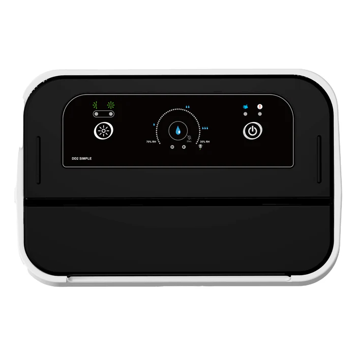 Le déshumidificateur à adsorption DD2 Simple d'EcoAir a remporté le prix du meilleur déshumidificateur léger décerné par le panel de test du Good Housekeeping Institute. Ce déshumidificateur élimine jusqu'à 9 litres d'humidité par jour et convient pour une surface de 70 m². Il utilise un agent adsorbant à la place d'un compresseur, ce qui explique son faible poids. Grâce à sa commande électronique, vous pouvez régler le déshumidificateur sur les positions basse, moyenne, haute ou mode linge. Réglez facilement son hygrostat sur 35 %, 40 %, 45 %, 50 %, 55 %, 60 % ou 65 % d'humidité. Le commutateur turbo Economy vous permet de régler le mode TURBO ou ECO. Le DD2 Simple est équipé d'un filtre antibactérien pour la purification de l'air. Un filtre à charbon contre les odeurs est disponible en option.